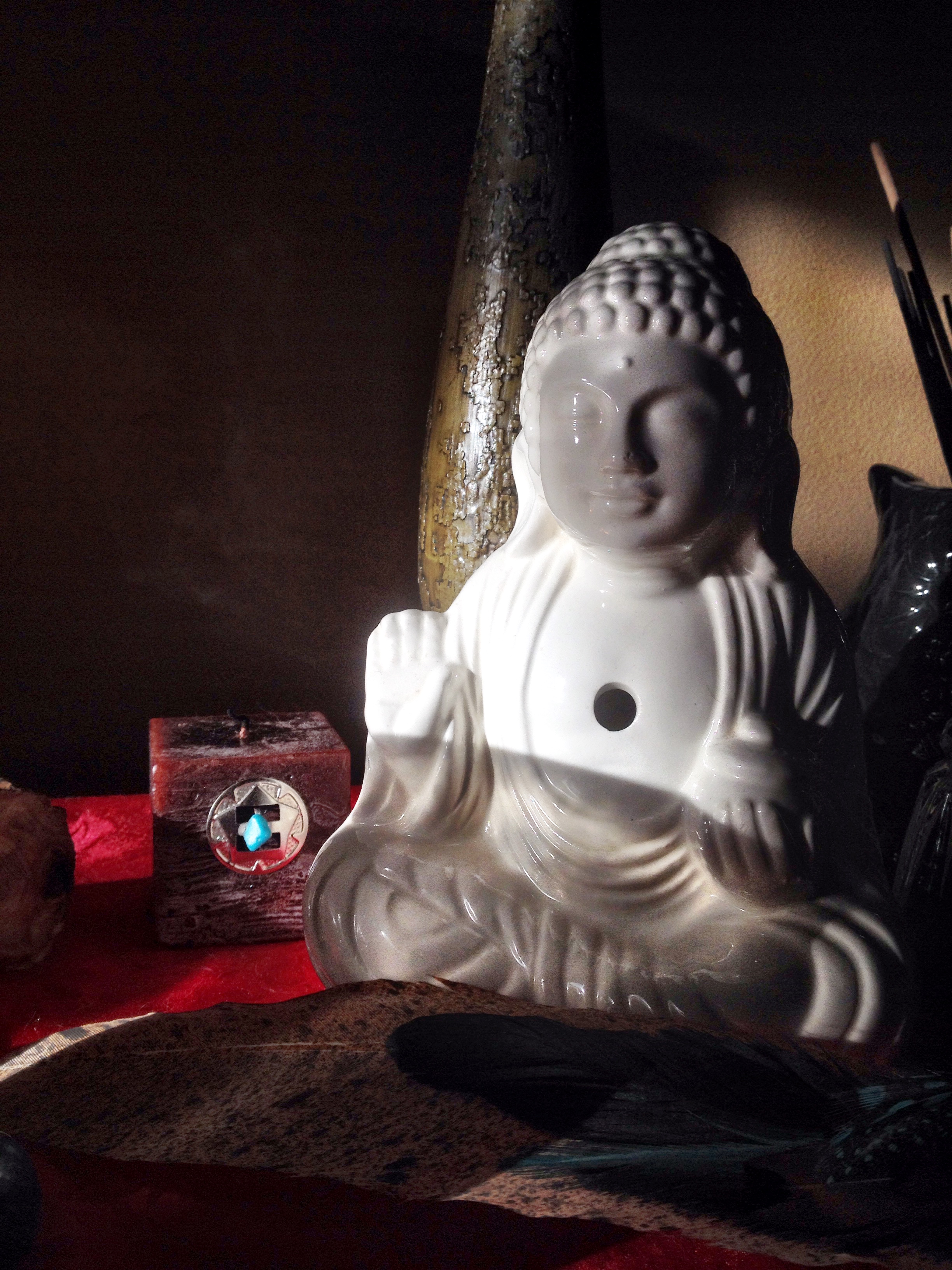 The Buddha on my altar is a reminder of peace, compassion, and wisdom.